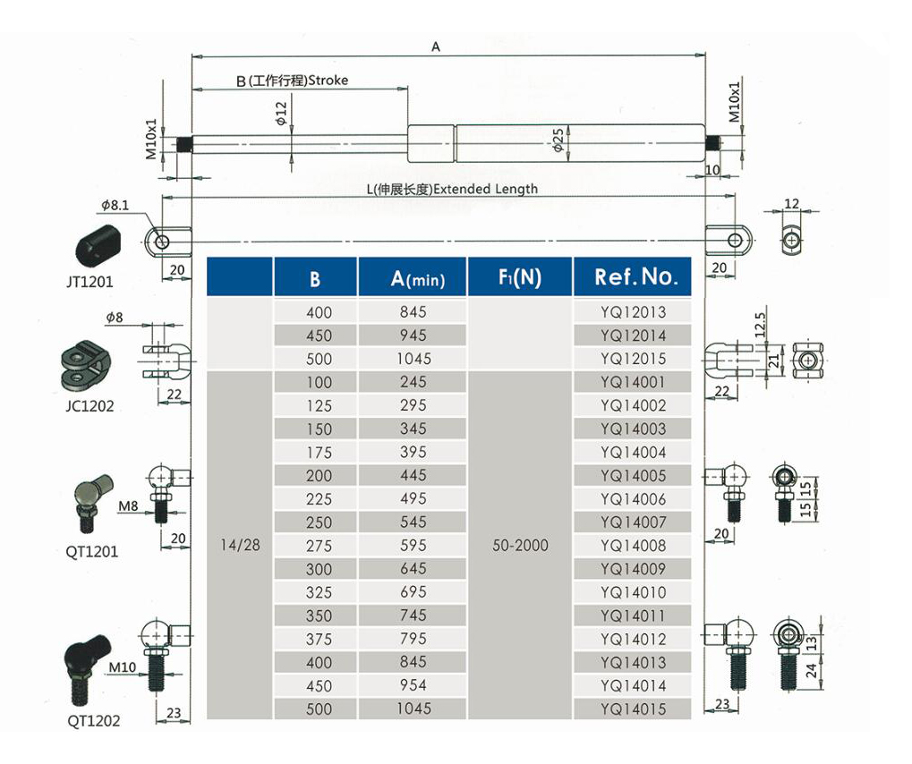 注:由于氣彈簧是非標(biāo)準(zhǔn)的,以上僅為型號的一部分。我們可以根據(jù)客戶的要求定制。