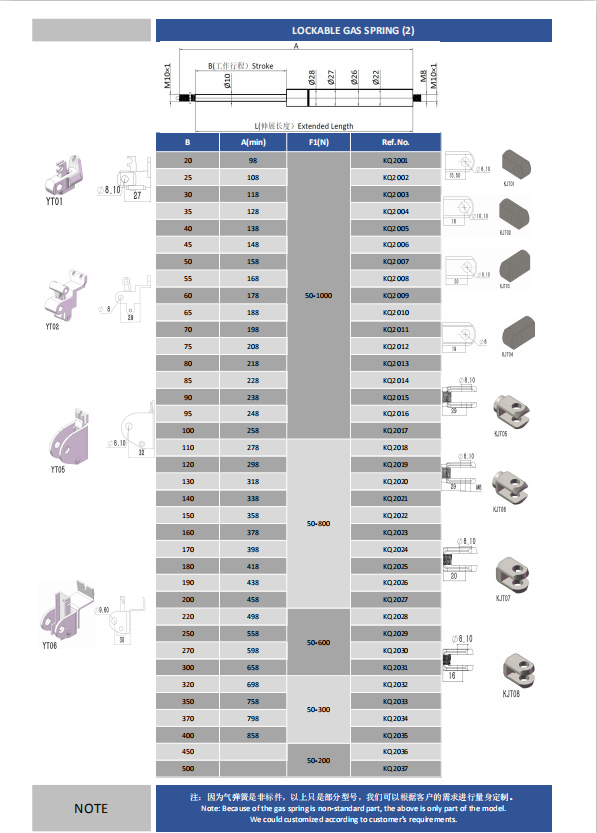 注:由于氣彈簧是非標準的,以上僅為型號的一部分。我們可以根據(jù)客戶的要求定制。