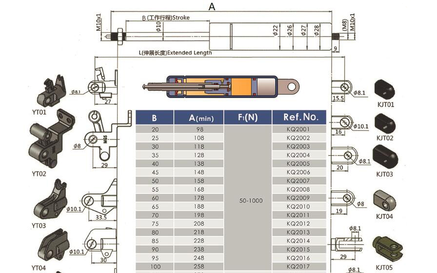 注:由于氣彈簧是非標(biāo)準(zhǔn)的,以上僅為型號(hào)的一部分。我們可以根據(jù)客戶的要求定制。